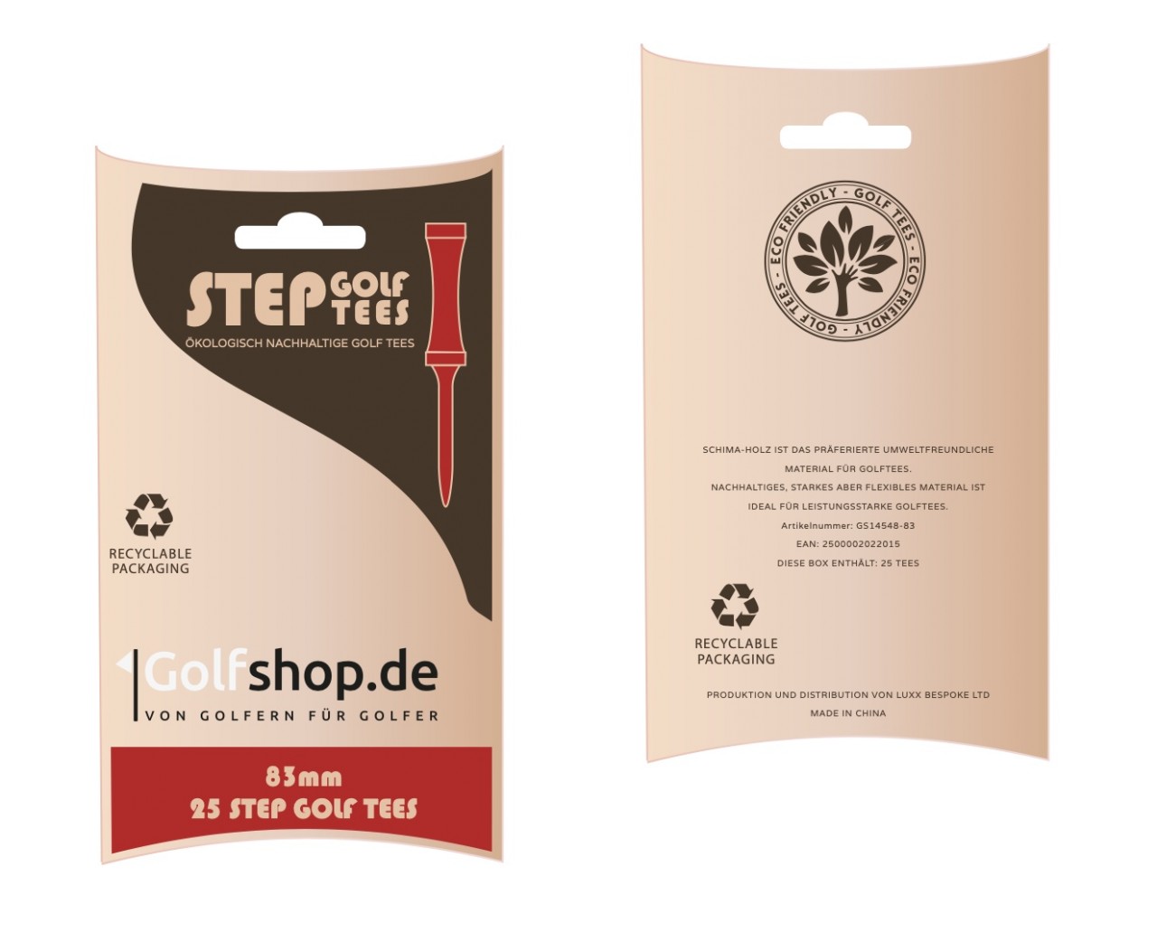 Steptees aus Holz in Kartonverpackung Jeweils 25 Stück pro Packung