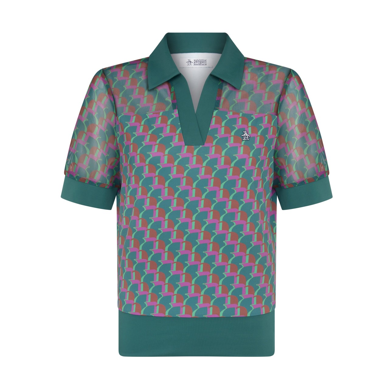 Original Penguin Shirred Front Printed Penguin Top Damen